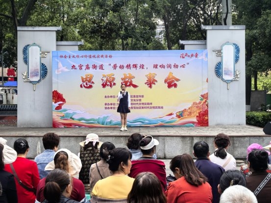 为持续推动党的创新理论“飞入寻常百姓家”,4月22日,重庆市大渡口区九宫庙街道“劳动铸辉煌,理响润初心”思源故事会在思源公园统战文化广场顺利举行。辖区群众代表齐聚一堂,在“五一”国际劳动节前夕共赴一场理论与实践交融的思想文化盛宴。