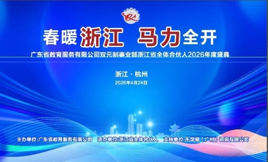 春风送暖,万物向荣,富春江畔生机盎然;同心聚力,砥砺前行,教育征程初心如磐!4月24日,粤教服务浙江团队怀揣着对教育事业的热爱与坚守,满载着并肩奋斗的收获与感动,从全国各地奔赴山水秀丽的杭州富阳,共同迎来“春暖浙江・馬力全开”--广东省教育服务有限公司双元制事业部浙江省全体合伙人2026年度盛会!