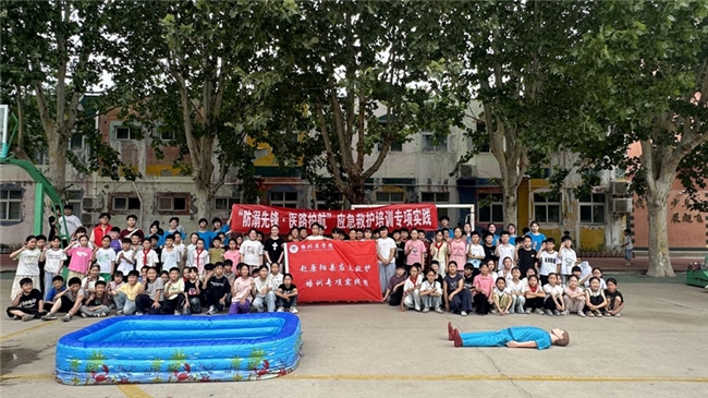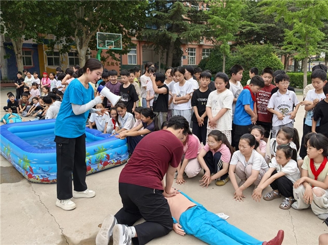 夏日炎炎,暑期将至,青少年溺水事故进入高发期。为筑牢校园安全防线,织密暑期防溺水“防护网”,6月23日,仁智书院“模拟池塘 防溺先锋”应急救护社会实践团15名医学生奔赴马庄完全小学,开展了一场别开生面、寓教于乐的防溺水安全教育社会实践,为全校200余名师生送上了一份干货满满的“暑期安全大礼包”。