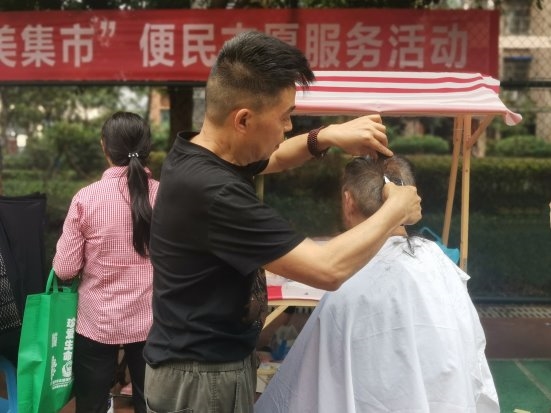 便民服务区精准对接群众需求。重钢总医院医疗专家为居民提供健康咨询和血压测量服务,普及慢性病防治知识;志愿者理发师和缝纫师提供免费理发、衣物缝补等贴心服务。