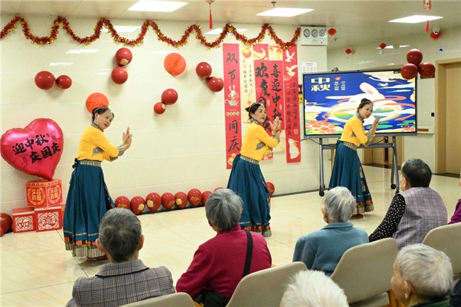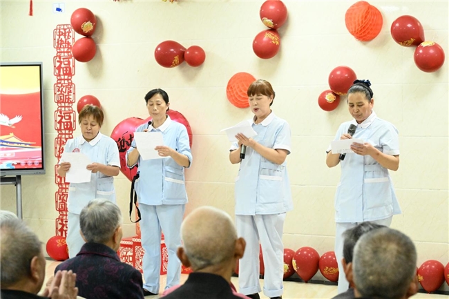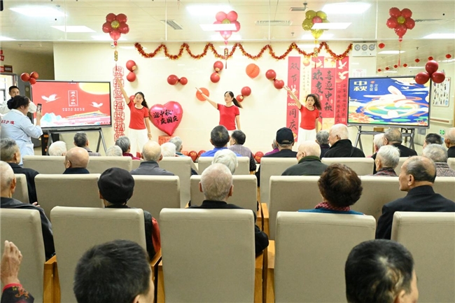 活动内容丰富多彩,护理员们合唱了老人喜欢听的《甜蜜蜜》,优雅的舞蹈表演赢得了阵阵掌声,爷爷婆婆们跟着节奏轻轻拍手,沉浸其中。