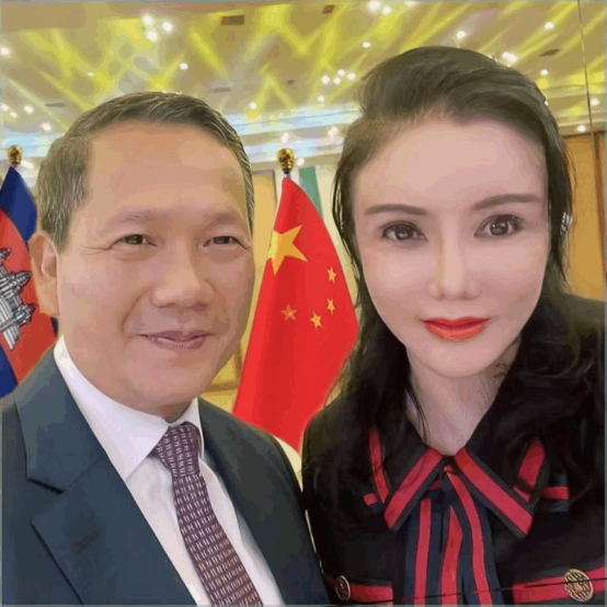 柬埔寨总理洪玛奈与国际经济战略研究院院长彭丹合影