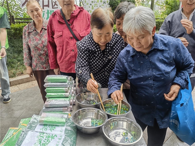 参与者手持筷子,全神贯注地夹起珠子,精准投入对应的分类容器。大家你追我赶,各民族居民在轻松氛围中掌握垃圾分类知识。