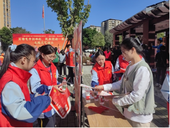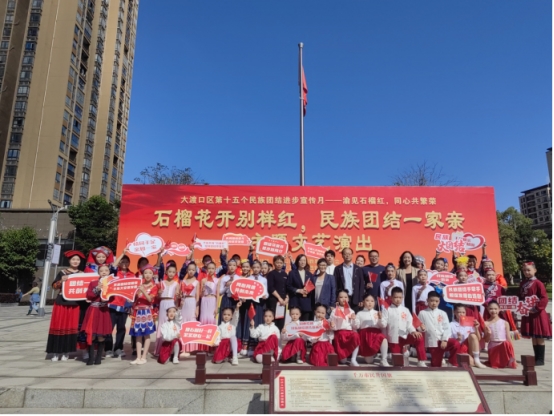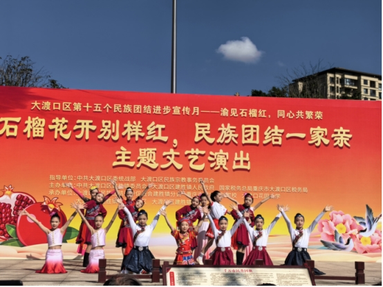 为深入推进民族团结进步事业,铸牢中华民族共同体意识,促进各族群众交往交流交融,10月23日,重庆市大渡口区建胜镇在百佳园社区文化广场举行“渝见石榴红 同心共繁荣”第十五个民族团结进步宣传月活动,通过文艺演出与政策宣传相结合的形式,推动民族团结理念深入人心,凝聚共同奋斗力量。