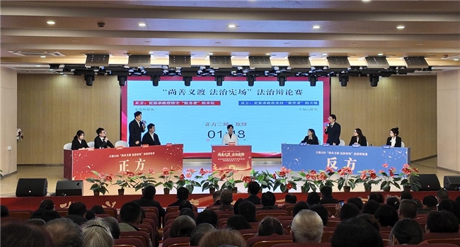 辩论中,正方引用“放管服”改革成效、一站式服务案例,强调政府应以主动、高效的服务回应市场主体需求,反方则列举市场垄断、无序竞争等乱象,论证严格、公正的监管是维护市场秩序、保护各方权益的“定海神针”。双方从宪法条文到地方实践,从宏观政策到微观案例,既有逻辑严密的推演,也有生动鲜活的讲述,台下观众时而凝神静听,时而点头赞许,现场氛围十分热烈。经过激烈的思想交锋和观点碰撞,正方“义渡辩锋队”获得胜利。