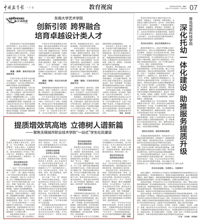 2.网络思政中心影响力扩大,“弘毅逐光”品牌推送校园暖心故事17篇,无锡城市职业技术学院学生亮相央视新闻视频号“大国工匠”栏目,观看总量达549.5万。首批12个校级网络思政精品项目顺利结项,17项作品获“第八届全国大学生网络文化节和全国高校网络教育优秀作品推选展示活动”省级推荐,原创思政微电影获第八届全国高校大学生微电影展示活动二等奖。