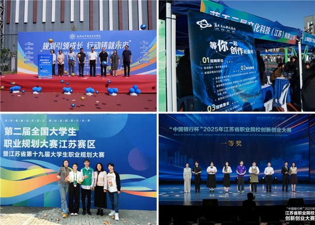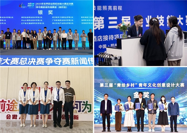 4.各类竞赛创新突破,学生在世界职业院校技能大赛新闻传播赛道荣获银奖,实现学校在该赛道的重大突破(市属院校唯一);在中华人民共和国第三届职业技能大赛(世界技能大赛遴选项目)中获优胜奖并入选国家集训队(市属院校唯一);省高职院校创意作品展二等奖2项;获江苏省“AI+信息素养大赛”(高职高专)特等奖1项、一等奖1项,定向锦标赛暨长三角定向邀请赛二等奖5项,“智跑江苏”定向运动俱乐部联赛女子团队赛亚军;师生在2025年江苏省职业院校技能大赛获一等奖4项、二等奖7项、三等奖15项,实现各学院全覆盖,一等奖数量创历史新高,位列市属院校第1,教师组位列全省前8;教师获2025年江苏省教学能力比赛二等奖1项、三等奖1项,在省“青绘乡村”青年文化创意设计大赛中蝉联两届金奖。