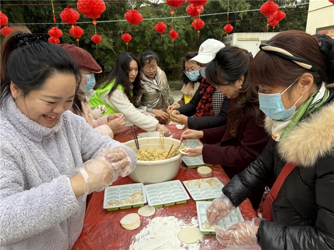 随后,包饺子活动将现场气氛推向高潮。社区工作人员、志愿者和居民代表齐聚一堂,分工协作,和面、擀皮、包馅,大家边包饺子边拉家常。