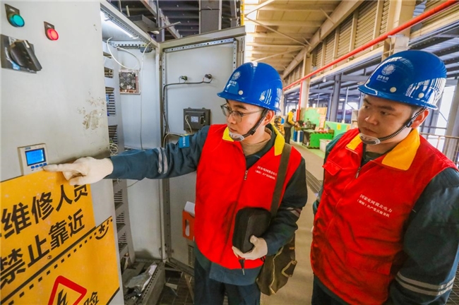 国网香河县供电公司党员服务队队员正在检查韵达快递华北运转中心用电设备。(王爱华 摄)