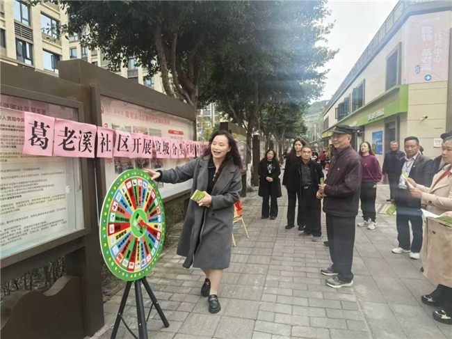 马踏春归启新程,文明新风润民心。2月27日,重庆市大渡口区九宫庙街道葛老溪社区组织开展“新春焕新,分类同行”系列垃圾分类宣传活动,以接地气的形式普及环保知识,让绿色文明理念融入新春烟火气,引导居民在辞旧迎新中践行文明新风,为2026马年新春增添一抹绿色暖意。