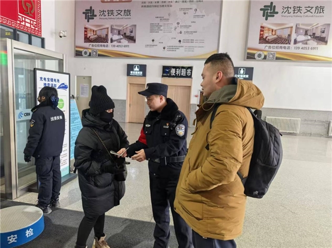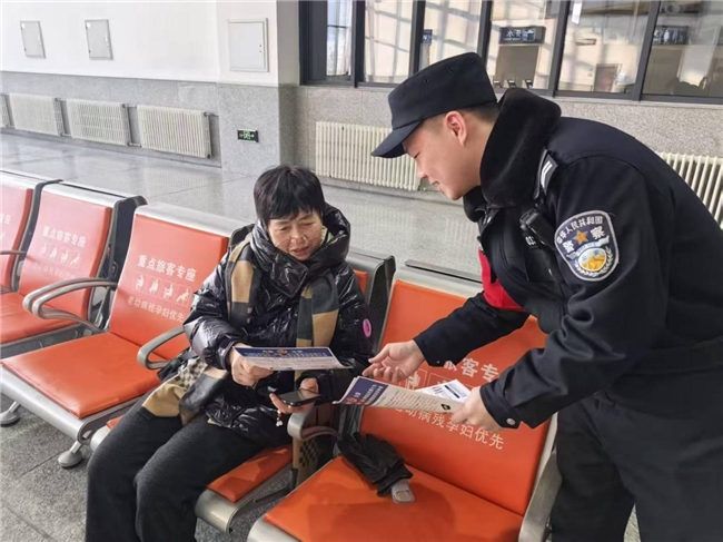 在守护旅客出行安全的同时,南芬站派出所民警同步开展反诈宣传,在南芬北站、南芬站候车室中设立宣传点位,结合购票、乘车途中的高频诈骗场景,用通俗易懂的语言讲解反诈知识、拆解诈骗套路,向旅客发放反诈宣传手册,提醒大家谨防购票诈骗、网络刷单、冒充客服等各类骗局,把反诈“平安符”送到每一位旅客手中。