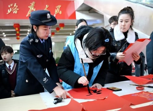 笔墨迎春送福至 警民同心暖春运