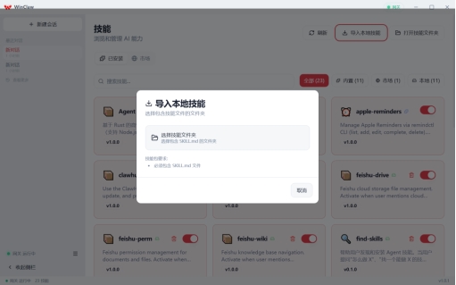 持本地Skill包导入与分享,方便用户间安全流转自动化工作流,逐步构建个人或团队的专属技能库,提升协作效率。