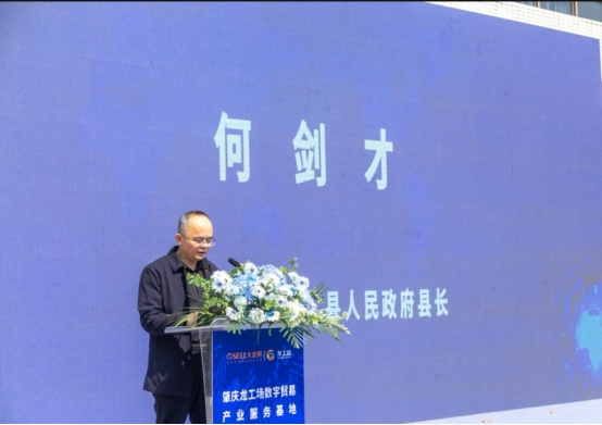 广宁县委副书记、县长何剑才在致辞中介绍,近年来广宁锚定高质量发展首要任务,深化“421”产业布局,做强云吞、竹制品、竹笋、肉鸽、油茶、甘薯干等特色产业,2025年地区生产总值增长4.8%,成功入选全国绿色发展百强县、全国投资潜力百强县。同时,广宁也是国家级电子商务进农村综合示范县,目前已建成城乡电商服务站超125个,2025年电商网络销售额达10.2亿元,快递业务量突破5000万件,电商销售已成为广宁乡村振兴的强劲引擎。肇庆龙工场作为广宁县政府和大龙网集团合作打造的跨境电商综合体,将依托冷链物流、质量检测、仓储配送等实体功能,构建集数字展示、跨境电商、供应链服务、品牌运营、人才培训于一体的综合服务平台,重点为竹制品、特色农产品提供全链条数字化服务,让“广宁制造”“广宁味道”走出国门、走向世界。他同时提出三点希望,希望基地高效运营、发挥优势,精准对接海外需求,打造县域数字贸易新标杆;希望本土企业主动拥抱数字经济,提高产品标准,用好跨境电商通道,打造一批具有国际竞争力的外销品牌,在国际市场展现广宁实力;希望各部门坚持“服务企业就是服务发展”,提供“母亲式”服务,推动基地做大做强,打造数字贸易赋能乡村振兴的“广宁典范”。